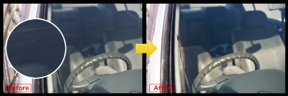 (ケミカル品または、ウィンドガラス専用ポリッシャーを使用し施工を行います) |